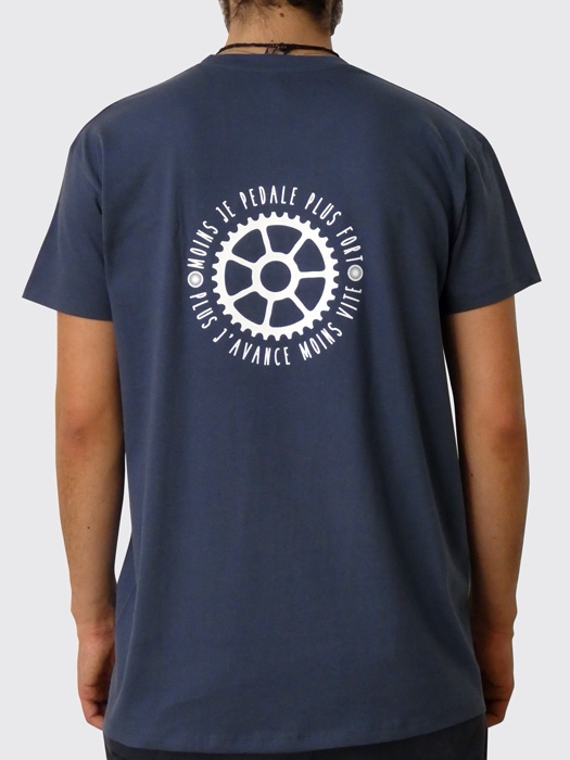 Réf.: tee-shirt-original-093-01-13-roue-ts-h-deMoins je pédale plus fort, plus j'avance moins vite !