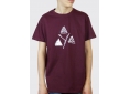 Le mannequin porte un tee-shirt de taille médium M, en bordeaux.